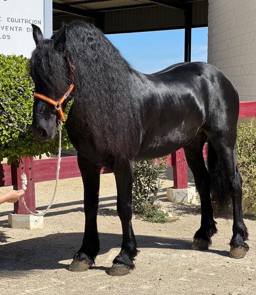 **Anuncio de venta: Hermoso semental frisón** Para la venta es un impresionante semental frisón, nacido en 2012. Este majestuoso semental negro impresiona por su aspecto elegante y su altura de 166 cm. Está excelentemente entrenado en doma clásica y siempre está dispuesto a actuar y aprender. Con su temperamento equilibrado y su impresionante presencia, es ideal tanto para jinetes de ocio ambiciosos como para el deporte de competición. Si está interesado y desea más información, estaremos encantados de atenderle.