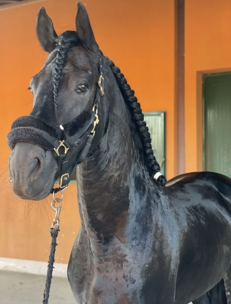 FOEKE VAN DE DEMRO STABLES (JEHANNES 484 X KYRA W.T) Stunning purebred Friesian stallion (not even aware of his breed) aged 8 years. Height: 1.72 m at the withers. A horse of unparalleled beauty and kindness. VERY HEALTHY, NEVER had any health issues. Performs perfectly on flat ground, an exceptional horse. Suitable for any rider with a minimum of experience. IMPORTANT GENETICS!! We are looking for someone who will love him passionately. For more information: +39 3917059140 (Agata) +39 3513334724 (Fabio) NO dreamers or traders, please.