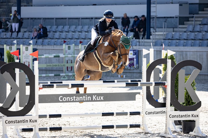 We are selling our 10-year-old chestnut gelding standing at 1.62 meters. He is an experienced competition horse and has been placed multiple times up to 1.25 m in M* classes. As a young horse, he also competed successfully up to 1.40 m in S* classes. He is well-behaved in handling, stands calmly for the farrier, loading, and trail riding with other horses is no problem. He also works excellently on the double longe. Due to his ambition in the show jumping arena, he is not suitable for beginners. For questions, please contact us via WhatsApp or by phone.