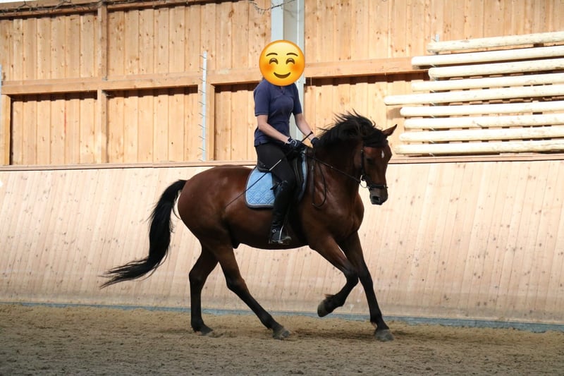 Rusty ist seit fast 6 Jahren bei mir in der Reitschule und seit langem das beliebteste Schulpferd hier. Ob Ponyspiele, Bodenarbeit, an der Longe Bälle fangen oder das A Springen beim Reitabzeichen 4 - Rusty zieht alles durch und trägt klein und groß. Er fährt mit meinen Schülern auf Turniere und Lehrgänge und überzeugt jeden mit seinem tollen Wesen. Reiterlich kann man ganz platt sagen: Richtlinien Reiten und Fahren Band 1-2 aufschlagen, machen was da steht - funktioniert! Eigentlich ist er mein bestes Schulpferd. Warum will ich ihn dann verkaufen? Ganz einfach: Rusty ist im Dezember `25 bei der Deutschen Hochschulmeisterschaft Reiten mitgelaufen. 3x A Dressur und 3x A Springen mit jeweils drei verschiedenen Fremdreitern. Drum herum laute Musik, Party, Tanzen auf der Reithallenbande. Und er hat es GELIEBT! Ich habe ihn lange nicht mehr so glücklich gesehen, wie dort. Er läuft in kaum einer Unterrichtsstunde so motiviert vorwärts und legt sich so ins Zeug. Da ging mir auf, dass dieses geniale Pferd nicht sein gesamtes Leben in einer Reitschule verbringen sollte. Er hat es verdient, nochmal als Privatpferd durchzustarten. Dabei wäre es möglich, dass er zB einem Nachwuchs-Reiter den Start in die Turnierkarriere ermöglicht, oder auch mit einer erwachsenen Person ins Gelände, auf Turniere und auf Lehrgänge fährt. Das alles macht ihm Spaß. Nur als reines Dressurpferd, das jeden Tag auf den Platz muss, um Schenkelweichen zu üben sehe ich ihn nicht. Das würde ihn auf Dauer langweilen. Wenn er abwechslungsreich gearbeitet wird, ist aber durchaus auch ein Kurzkehrt und ein Außengalopp gar kein Problem. Er arbeitet auch daran gerne - ein richtiger Musterschüler! Nur halt bitte nicht jeden Tag das Selbe (aber das gilt ja eigentlich für jedes Pferd, nicht wahr?). Rusty läuft ohne Probleme eine A Dressur und ein A** Springen. Auch Geländepferde-Prüfungen ist er als junges Pferd erfolgreich gelaufen (5-jährig Geländepferde A platziert). Im Kinder-Unterricht kann man Rusty an die Longe nehmen und den Kindern Bälle zuwerfen, über Planen reiten (da darf gerne auf ein kleiner Spring drauf stehen) und mit dem Besen Polo spielen. Aktuell hat er auch im Schritt geführt einen Schlitten mit Kids drauf gezogen. Rusty steht im Offenstall mit 4 anderen Wallachen. Er ist ranghoch, ohne unangenehm dominant zu sein. Bei mir ist er vorne beschlagen, beim Vorbesitzer/Züchter hatte er im Sommer 4 Eisen, da dort viel im Gelände geritten wurde. Ansonsten ist er Influenza und Tetanus durchgeimpft und bekommt jedes Jahr die Zähne kontrolliert. Da muss idR nichts bzw. kaum etwas gemacht werden. Für irgendetwas Anderes brauchte er bei mir nie einen Tierarzt - nichtmal einen Einschuss hatte er in den vergangenen 6 Jahren! Er ist einfach ein super robustes „Pony“. Das Fairness halber möchte ich die zwei kleinen „Mankos“ von Rusty nicht vorenthalten: Er hat einen Pony-Dickkopf. Das bedeutet: kleine Kinder oder unerfahrene Menschen sollte man nicht damit beauftragen, ihn an Futter vorbei zu führen. Zumindest nicht, wenn er das nicht fressen soll :) Rusty ist NICHT für ANGSTREITER geeignet. Er hasst es, wenn der Reiter mit den Oberschenkeln klemmt und am besten dabei noch eine harte, unnachgiebige Hand hat. Solche Reiter werden von ihm binnen kürzester Zeit von seinem Rücken entfernt… Es ist nicht schlimm, wenn man noch nicht gut reitet. Nur bitte nicht klemmen ;) Rusty wird nur verkauft, wenn ich das Gefühl habe, dass der neue Besitzer zu ihm passt und dass er es gut haben wird. Er ist kein Notverkauf. Es gilt Platz vor Preis!