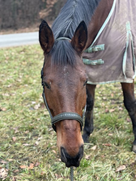 Due to a change in my equestrian plans, I am selling my well-behaved and well-trained 14-year-old gelding, who stands 1.76 meters tall. I have competed with him in show jumping competitions for the past two and a half years. Up to 95 cm, there are no issues. When it gets higher, he tends to check his footing, so it requires a confident rider to handle that. My daughter rides him both in the arena and in the field. He is very uncomplicated. If he gets scared or startled by something, he simply stops and observes, then continues without any problems. Unfortunately, he is too big and too much horse for my daughter for dressage training. He is a true leisure partner; you can do everything with him—trail riding through water, riding without a saddle, lunging, even beginners—he is always attentive and very affectionate. I am looking for a home where he is appreciated as a leisure partner rather than a sport horse. Lavendel is currently in a mixed herd and ranks low in the social hierarchy. I sold him 1.5 years ago, but after he got injured in his new environment and was no longer the horse I knew, I immediately bought him back and cared for him lovingly, so he is now back to his old self. More details can be shared during a personal meeting. If interested, please send a message, and I will get back to you immediately. Absolutely priority is finding a good home over price.