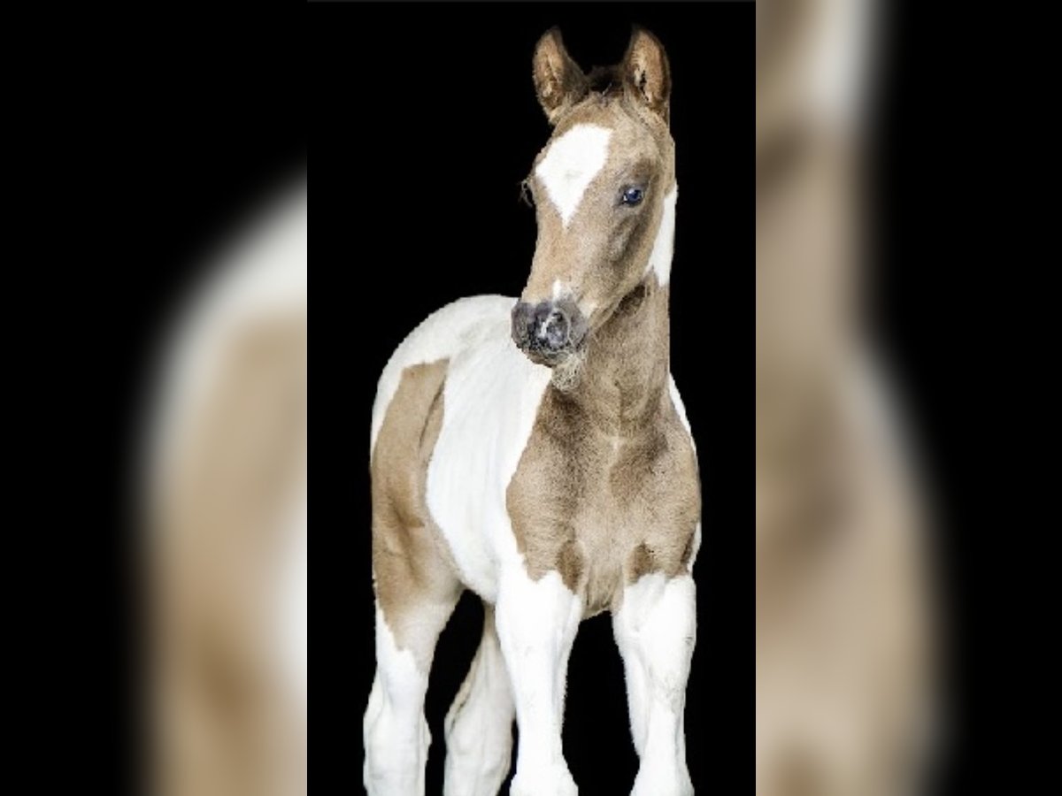 Opvallende, gelijkmatig getekende hengst in gouden, bont gewaad. Correct in de fundamenten en uiterst aangenaam in de omgang. Top opfok met veel beweging in heuvelachtig terrein met regelmatige hoefsmid/ ontwormingen en mineralenvoeding. Een jongeling die in de toekomst zal weten te imponeren in de dressuur, springen en eventing. De vader is succesvol in de dressuur en MV Samico F is meerdere keren S-dressuur winnaar, en MVV Samber is succesvol in S-dressuur en M-springen. Locatie Duitsland.