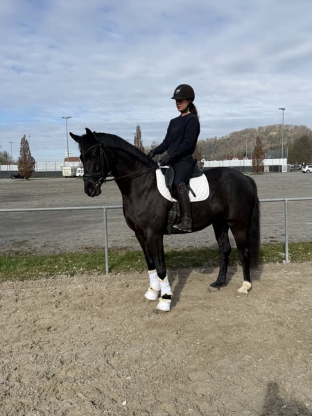 For sale is our handsome 4-year-old gelding (by Danciero out of Casparino); standing at 16.1 hh, directly from the breeder. He is temperamentally sound and very people-oriented, showing himself to be very straightforward in daily handling, always clear-minded, reliable, and easy to manage. He has three good basic gaits and is eager and motivated under saddle. His exceptional lightness of movement gives his rider a sense of security. He is also well-behaved and dependable in the field. Currently, he is kept in an open stable and is accustomed to group turnout. Due to his size, he is unfortunately also too small for me in the long term. A loving, family-oriented home is our top priority.
