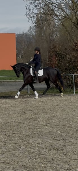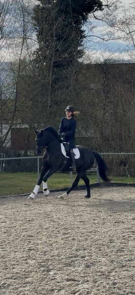 Zum Verkauf steht unser 4-jähriger schicker Wallach (v. Danciero x Casparino); 1,63 m groß, direkt aus Züchterhand. Charakterlich einwandfrei und menschenbezogen zeigt er sich im täglichen Umgang sehr unkompliziert, stets klar im Kopf, zuverlässig und angenehm im Handling. Er verfügt über drei gute Grundgangarten und präsentiert sich unter dem Sattel arbeitswillig und motiviert. Ausgesprochen leichtrittig vermittelt er dabei seinem Reiter ein sicheres Gefühl. Auch im Gelände ist er brav und zuverlässig. Aktuell steht er im Offenstall und kennt somit die Gruppenhaltung. Aufgrund seiner Größe ist er für mich leider auch perspektivisch zu klein. Ein liebevolles, familiäres Zuhause hätte für uns Priorität.
