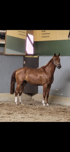 Selling a very handsome young gelding. Well-schooled in lunging and accustomed to rider weight. Unfortunately available at a favorable price due to health reasons. He is sound and free of lameness.