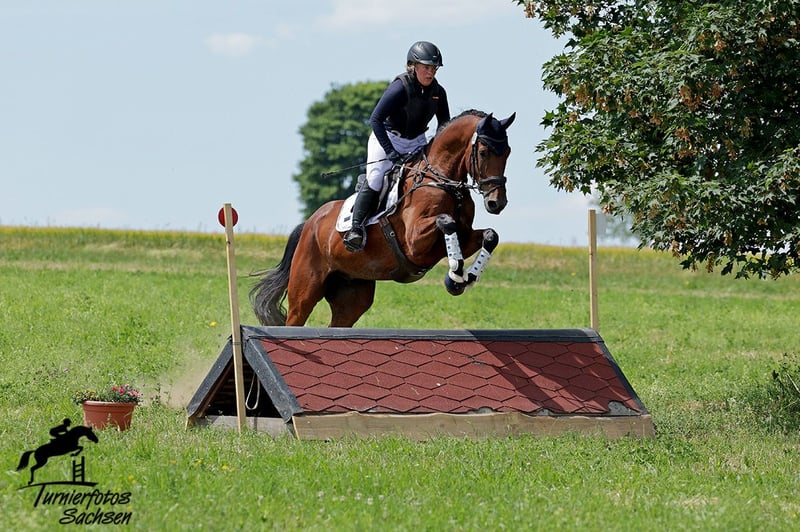 Na sprzedaż wystawiony jest kasztanowaty wałach, urodzony w 2020 roku. Z wysokością w kłębie 173 cm jest eleganckim i mocnym partnerem zarówno do wszechstronnej jazdy, jak i skoków. Koń został starannie wytrenowany i posiada solidne podstawy w ujeżdżeniu, skokach oraz terenach. Do jego największych osiągnięć należą zwycięstwa w próbach terenowych kategorii A z ocenami 9,0 i 9,2. Udało mu się również zdobyć wysokie noty i miejsca w próbach skokowych i ujeżdżeniowych kategorii A. Dzięki temu podczas tegorocznych Mistrzostw Niemiec dla 5-letnich koni wszechstronnych dwukrotnie pokonał trasę bezbłędnie i zdobył miejsce w małym finale, które przywiózł ze sobą. Obecnie szuka partnera, który będzie go dalej rozwijał i wyzwał, ponieważ zawsze ma chęć do nauki. Czasem jednak chętnie spędza czas podczas relaksacyjnego przejażdżki. W przypadku zainteresowania lub dodatkowych pytań chętnie służę pomocą. Zapraszam do umówienia się na oględziny i jazdy próbne.