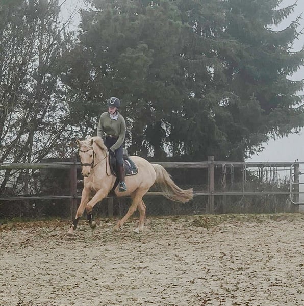 Casanova is a 6-year-old, 15.7 hh German Riding Pony gelding. Under saddle, he is the more robust type; he loves work and enjoys being challenged. Therefore, he is not suitable for weaker or more timid riders. He has a passion for jumping and has already successfully completed several cross-country training sessions. In the terrain, he is an absolute reliable partner. He is currently barefoot and kept in an open stall. Price: €15,000