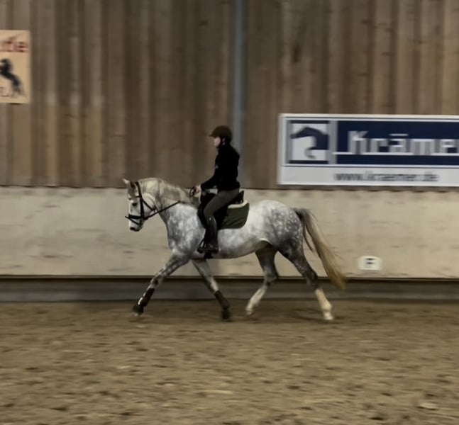 Dieser schicke siebenjährige Wallach ist ein XL-Pony in Reitpferdeformat, das sich durch seinen hochanständigen Charakter auszeichnet. Brenton ist reell ausgebildet und zeichnet sich durch seinen angenehmen Grundschwung und seine unkomplizierte Arbeitseinstellung aus. Aktuell ist er dabei, die letzten kleinen Feinheiten im A-Bereich (Dressur) routiniert abzurunden, sodass er für die Turniersaison startklar ist. Seit Kurzem ist er ebenfalls in Springberitt, wo er erste positive Entwicklungstendenzen offenbart. Er ist mehrmals die Woche in Beritt und im aktiven Muskelaufbau. Der geringe Ausbildungsstand ist auf Zeitmangel zurückzuführen, weswegen er nun letztendlich auch verkauft wird, um in einer neuen Umgebung glänzen zu können. Aktuelle Röntgenbilder mit gutem TÜV sind vorhanden und können bei ernstem Interesse zur Verfügung gestellt werden.