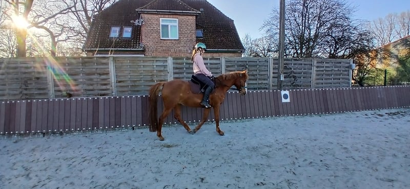 Verkaufe deutsches Reitpferd – Springstute Zum Verkauf steht diese charmante deutsche Reitponystute, geboren im Jahr 2016 . Sie hat ein Stockmaß von 142 cm, was sie zu einem idealen Begleiter für junge Reiter oder ambitionierte Freizeitreiter macht. Die Stute verfügt über eine solide Grundausbildung. Sie zeigt sich im Parcours stets zuverlässig, zwischendurch temperamentvoll, deßhalb kein Pony für Reitanfänger. Dank ihrer freundlichen und aufgeschlossenen Art ist sie im Umgang sehr angenehm. Sie lässt sich brav putzen. Bee steht zur Zeit im Offenstall in einer großen Ponyherde und ist sehr verträglich mit allen Ponys. Beelay Rouge ist gesund, regelmäßig geritten , geimpft, entwurmt und problemlos zu verladen. Bei Interesse oder für weitere Informationen stehe ich gerne zur Verfügung. Diese schöne Fuchsstute wartet auf eine neue, liebevolle Reiterhand, die ihre Talente weiter fördert und schätzt, da unsere Tochter leider aus ihr rausgewachsen ist.