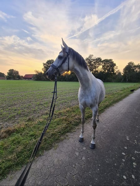 We are looking for a new home for our beloved 9-year-old German sport horse mare, approximately 1.68 meters tall. We recently took her over due to personal reasons (we have known her for about three years), and we are currently in the process of retraining her. Since we have other horses, we cannot keep them all. Lizzy is well-suited for a primarily leisure riding lifestyle due to health limitations. According to her veterinarian, she can be ridden. More details are available in a personal conversation. She is an extremely reliable horse in the field and is very well-behaved in handling. Within the herd, she ranks in the middle. We imagine she would be ideal for someone who enjoys recreational riding, liberty work, hacking, and gymnastic exercises in the arena—either ridden or ground work. She should not be used for jumping. We are looking for someone who can fully dedicate themselves to this horse and has enough time and patience. A proper introduction with time to get to know each other would be preferable. As she is currently being retrained, trial riding is not possible at the moment. However, this can be arranged at a later date. This is not a desperate sale. The price is negotiable within a realistic range, as we prioritize her well-being and space. She is accustomed to both pasture and box stalls, with the latter only with plenty of turnout during the day. We would also like to see her future home beforehand.