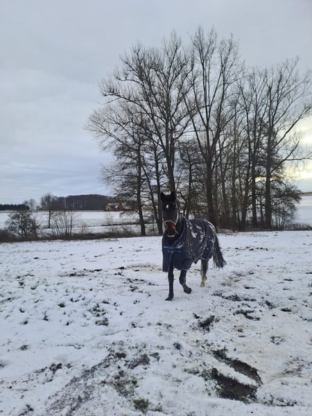 Na sprzedaż jest bardzo przyjazna, dobrze reagująca na człowieka klacz o wyjątkowym wigorze i wyrazie w podstawowych chodach. Posiada doskonałe predyspozycje do sportu ujeżdżeniowego i szczególnie wyróżnia się swoją mocną, energiczną pracą. Klacz przez dłuższy czas nie była jeżdżona, dlatego wyłącznie oddajemy ją w ręce doświadczonych jeźdźców. Potrzebuje pewnego, doświadczonego opiekuna, który chętnie podejmie się odbudowy i dalszego szkolenia utalentowanego konia. Przy odpowiedniej stymulacji jej potencjał ujeżdżeniowy można wspaniale rozwinąć. W kontaktach jest posłuszna, uważna i współpracująca, jednak pod siodłem wymaga jasnego, spokojnego prowadzenia i regularnej pracy. Nie jest to koń dla początkujących – to prawdziwy projekt serca dla jeźdźców z wyczuciem i doświadczeniem. Jeśli szukasz konia z perspektywami, wysoką jakością ruchu i dużym potencjałem rozwojowym, ta klacz będzie ciekawą partnerką na dalszą sportową drogę. Przy poważnym zainteresowaniu prosimy o wiadomość z krótkim opisem.