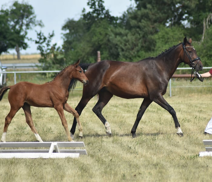 Miami is a proven broodmare, having produced four premium foals with us so far. She is easy to handle and well-behaved. She is currently in foal to the Bundeschampion Viva Vitalis and is expected to foal in April 2026. Her first foal, now four years old, has already been successfully presented in riding horse competitions. Miami was backed at the age of five but has not been ridden since due to her successful breeding career.