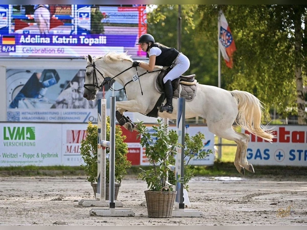 Celebration 62 – a talented show jumping mare with power and character We are offering our 13-year-old mare, Celebration 62, who descends from a strong jumping pedigree (Cashmaker x Kolibri). This mare impresses with her considerable talent, strength, and a pronounced willingness to perform. She possesses everything one expects from a sportily inclined show jumper: an active hindquarters, plenty of energy, and a clear work ethic. In daily handling, she appears alert, attentive, and confident. Under saddle, she tends to be forward-thinking and requires a rider who is clear and consistent in their aids. She is not a “set-and-forget” type but a horse for riders who enjoy working with a motivated and sensitive partner. With appropriate training, she demonstrates engagement, a willingness to learn, and high-quality scope over fences. Experienced riders will find in her a horse with potential for development and future success. Age: 13 years Height: approximately 16.1–16.2 hh Breed: Mare, grey Strong pedigree (Cashmaker x Kolibri) Lots of talent and drive Suitable for ambitious riders Ideal for: ✔ Ambitious youth or adult riders with support ✔ Riders with a clear, calm riding style ✔ Sport-oriented leisure or competition riders Not suitable for complete beginners or insecure riders. An honest, characterful mare with high quality, offering her rider much joy and development potential when paired with the right person.