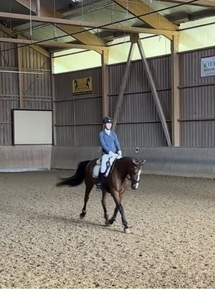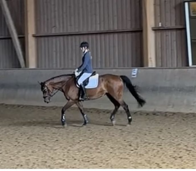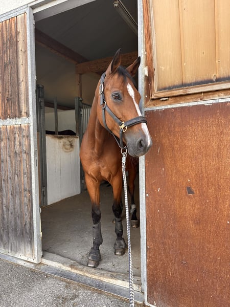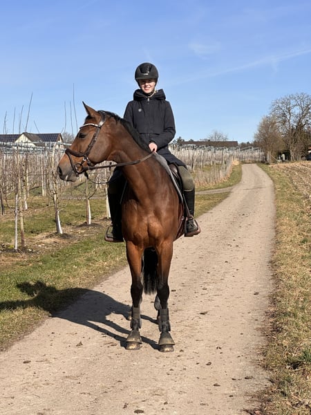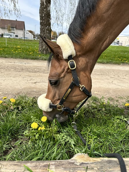 Lilly ist eine sehr brave und umgängliche Stute. Sie hat unsere Tochter vom Reiterwettbewerb bis zum A-Springen vertrauensvoll begleitet. Seriensiegerin in Springreiter-Wettbewerben, E-Springen, A-Springen. Im Parcours läuft sie sehr rhythmisch und springt ohne Zögern Gatter, Planken, Wasser und kleine Geländehindernisse. Galoppwechsel macht sie flüssig. Drei geregelte gute Grundgangarten. Sehr ruhig und brav beim reiten in der Halle, auf dem Außenplatz und im Gelände. (Geht auch alleine ohne Begleitpferd ins Gelände) Dressur bis A ausgebildet. Schmiedefromm (4x Eisen), verladefromm, im Stall sehr umgänglich. Lilly ist Aufsetzkopper v.a. wenn es Futter gibt oder viel im Stall los ist. Sie ist LPO konform geimpft und regelmäßig entwurmt. Wir hoffen für sie ein neues 5* zuhause mit gutem Pferdemanagment zu finden wo sie wieder jemand glücklich machen kann und ihr ruhiges Wesen mag. Reitanfänger oder ängstliche Reiter wären für sie sehr passend. Wir geben sie nur in allerbeste Hände – Platz vor Preis! Lilly kann Probe geritten werden. Wir nehmen uns gerne die Zeit dafür und verlangen 50 € pro Termin. Bei Kauf wird der Betrag verrechnet. Mehr Videos, Fotos oder Informationen gerne auf Anfrage.