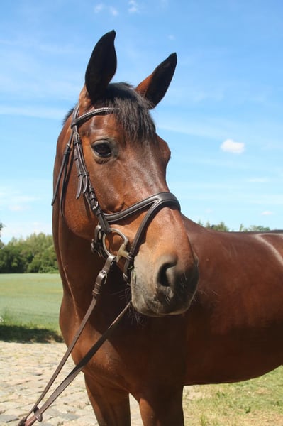 With a heavy heart, I have decided to sell my mare "Lotti." This decision was not easy for me, and I have wrestled with it for a long time. However, due to my two young children, I lack the time to provide her with the workload she needs. Additionally, since my daughter has shown interest in riding, our family needs a horse that can be ridden by everyone. Lotti is very gentle, well-behaved, and reliable in daily handling — even my children can lead and groom her without any issues. She also remains calm and uncomplicated when visiting the farrier, veterinarian, loading into the trailer, or travelling. She is free of bad habits such as biting or similar behaviors. In ground work, she is also very cooperative, as she is highly attentive to humans and works well. However, under saddle, she requires an experienced rider. She tends to lean on the bit, can be spooky, and may occasionally shy to the side. Group rides are no problem, but she is unsure when riding alone and can be easily spooked by “scary” objects. She is also suitable for breeding — she has already foaled at a young age. She has a slight crookedness in her pelvis, which does not affect her riding ability. I have had her regularly treated by an osteopath (biannually), and I would recommend continuing this. Currently, she is stabled with daily turnout and overnight in a box stall. I can also imagine her in a pasture-based system. She is regularly dewormed, fully vaccinated, and will be sold with her complete tack. It is especially important to me that she finds a caring and responsible new owner. I will not sell her to a dealer. I am not in a rush to sell and wish for her to find a home where she is appreciated and well cared for. Priority goes to a good home over price! For serious inquiries or further information, I am happy to be available. Viewings and trial rides can be arranged by appointment.