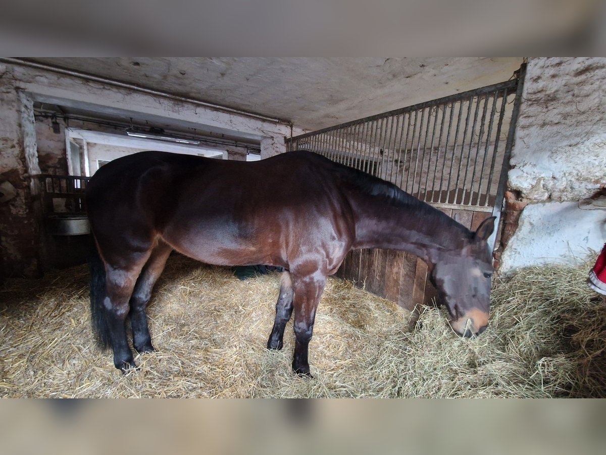 Due to health reasons, I am offering my beautiful mare, who will soon be 16 years old, for sale. I can no longer keep up with her due to my back condition. She was born on March 31, 2010, stands 172 cm tall, and is dark bay. Pedigree: Stakatos Highlight / Damon Hill She may also be of interest for breeding purposes. This decision is very difficult for me, as I have always cared for my horses until their last breath. She is currently ridden by a 15-year-old girl. She enjoys jumping, is motivated, focused, and pulls well to the jump. Has competed up to class E so far. She definitely has potential. She has three very good basic gaits with impulsion, a solid foundation, and correct conformation. Training in dressage includes elementary lessons, traversals, medium trot, shoulder-in, simple changes, and rein-back. She handles terrain well, both alone and in company, without any issues. She is familiar with open stable and box stall management. Gentle in handling. No bucking, rearing, biting, kicking, or headlong rushing. Not suitable for beginners, insecure, or nervous riders. Currently barefoot. Does not cling to other horses. Estrus cycle is unobtrusive. Dressage saddle 17.5" Kentaur Ithaka AP can be purchased if desired. Regularly dewormed, vaccinated, and teeth maintained. I had her X-rayed three years ago before purchase—hock joints (due to chips) and fetlock joints at the rear. No findings. She has no health issues. If seriously interested, I look forward to your inquiry and answering any further questions. Videos can be sent upon request. Price: €6200 VB Contact: 01775284235