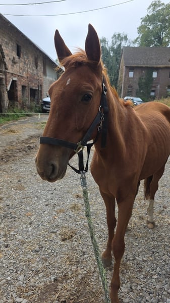 C'est avec un cœur lourd que je vends ma jument élevée par mes soins, issue de Skyliner × Loui Le Bon. Elle est proche des humains, sait marcher au licol et est également docile pour le maréchal-ferrant. De plus, elle apprend rapidement et est jusqu'à présent très calme dans toutes les situations. Malheureusement, avec une taille au garrot d'environ 1,60 m, elle restera trop petite pour moi, c'est pourquoi je cherche un foyer approprié pour elle. Place avant le prix Si vous êtes intéressé, n'hésitez pas à me contacter.