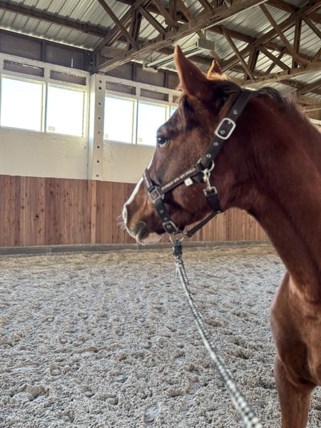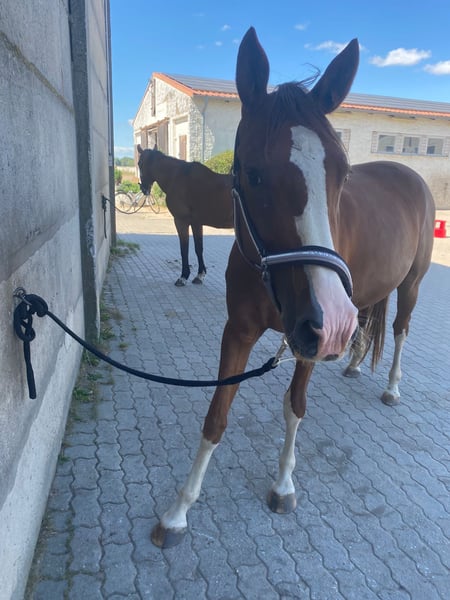 With a heavy heart, I am seeking a loving and responsible forever home for my mare Cäthe. Cäthe is 5 years old and a very friendly, human-oriented mare with a pleasant temperament. Due to an injury at the origin of her suspensory ligament, she is no longer suitable for riding and is therefore being rehomed as a companion horse. She would also be well-suited for breeding purposes. Currently, she lives in a paddock with a small herd of mares, and during the summer, she spends her days on pasture. She is accustomed to stall life, handles daily handling well, and enjoys human company as much as the company of other horses. Cäthe is not meant to become a "trophy horse" but deserves a permanent place where she is loved, cared for, and appreciated. Ideally, her new owner would be open to occasional visits. The well-being of the horse comes first, not the price. If genuinely interested, I am happy to provide more information.