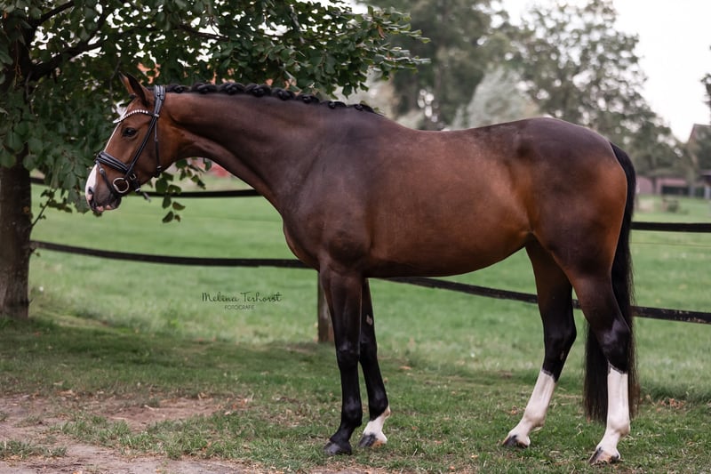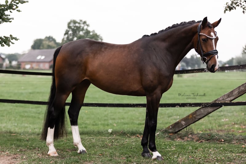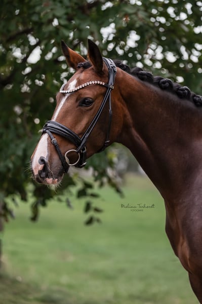 Diese typvolle und bildhübsche Stute überzeugt durch ihre hervorragende Abstammung, ihren tollen Charakter und ihre Qualität in allen drei Grundgangarten. Sie stammt aus einem sporterfolgreichen Mutterstamm mit Nachkommen bis S-Niveau, Teilnahme am Bundeschampionat bis ins Finale und einem gekörten Hengst. Sie verfügt über drei gute Grundgangarten, ist stets motiviert, lernwillig und lässt sich dabei problemlos auch von Mädchen reiten (Video bei ernsthaften Interesse verfügbar) Sie ist nun bereit für ihren weiteren Ausbildungsweg. Eine echte Partnerin mit viel Perspektive für Ausbildung und Turniersport. Im Umgang ist sie brav, unkompliziert und menschenbezogen. Sie läuft derzeit barhuf, ist klinisch und röntgenologisch ohne Befund (TÜV obB), Protokoll kann bei ernsthaftem Interesse gerne eingesehen werden. Ein Nachwuchspferd mit hervorragenden Anlagen, das nun fördernde Hände sucht! Direkt vom Züchter! Für das Probereiten erlauben wir uns 30€ zu erheben, die selbstverständlich mit dem Kaufpreis verrechnet werden.