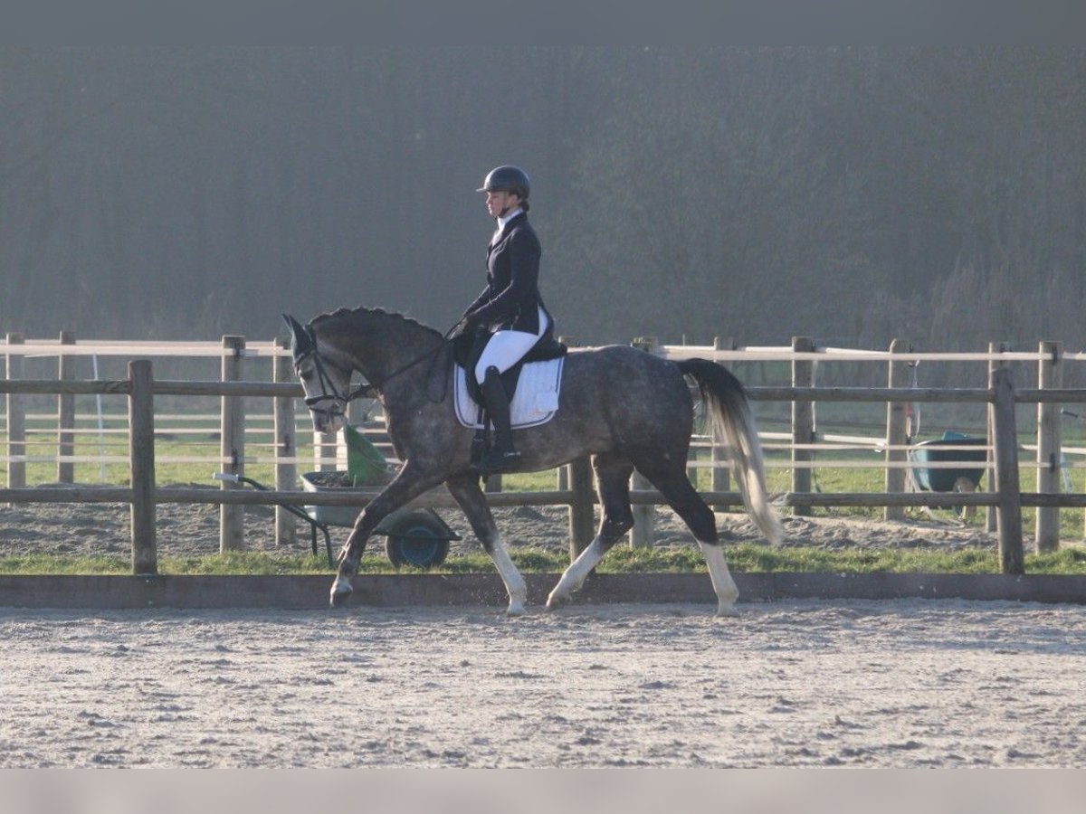 A very nice, well-moving gelding, 16.3 / 16.4 hands tall, with a compact build. It is the ideal lady's horse / transition pony to horse for shining in the arena. His sire is the German-bred Shagya stallion Basalt R, and his dam is a fully German warmblood with lineage including Quarterback (son of Quarterman Brand) x Wolkentanz I. He is very pleasant to ride, with a good willingness to move. Currently, he has completed his first L2 competitions, and we are refining everything in training, working on some M-level exercises. He also demonstrates a good jump and can clear a small course of about 70 cm. At the moment, our main focus is on dressage, so we are less involved with jumping. He also enjoys hacking out and is not afraid of the traffic passing by. In character, he is an honest, gentle, and friendly horse that always has the desire to work. Available for viewing in Wijk en Aalburg. All (re) inspections permitted.