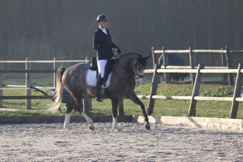 Sehr hübsches, fein bewegendes Warmblut, 1,63 / 1,64 m groß, kompakt gebaut – das ideale Damenpferd / Übergangspferd vom Pony zum Pferd, um in der Dressur zu glänzen. Sein Vater ist der deutsche Zuchtstammhengst Basalt R, ein Shagya-Araber, und seine Mutter ist vollständig deutsch warmblütig, mit Abstammung von Quarterback (v. Quarterman Brand) x Wolkentanz I. Er ist sehr angenehm zu reiten, mit angenehmer Arbeitsbereitschaft. Momentan hat er seine ersten L2-Wettkämpfe absolviert, und wir verfeinern derzeit alles im Training und arbeiten an einigen M-Übungen. Außerdem zeigt er eine gute Springqualität und springt eine kleine Parcoursrunde von etwa 70 cm. Derzeit liegt unser Fokus hauptsächlich auf der Dressur, daher beschäftigen wir uns mit dem Springen momentan weniger. Ausritte macht er ebenfalls sehr gern, und er ist gegenüber dem Verkehr, der hier vorbeifährt, nicht ängstlich. Charakterlich ist er ein ehrliches, sanftes und freundliches Tier, das immer Lust hat, etwas zu tun. Besichtigung in Wijk und Aalburg möglich. Alle (Re-)Körungen erlaubt.