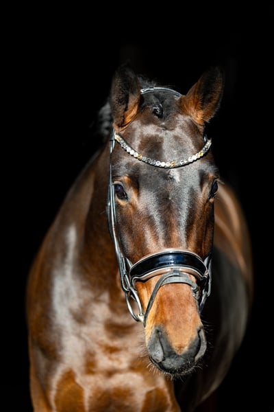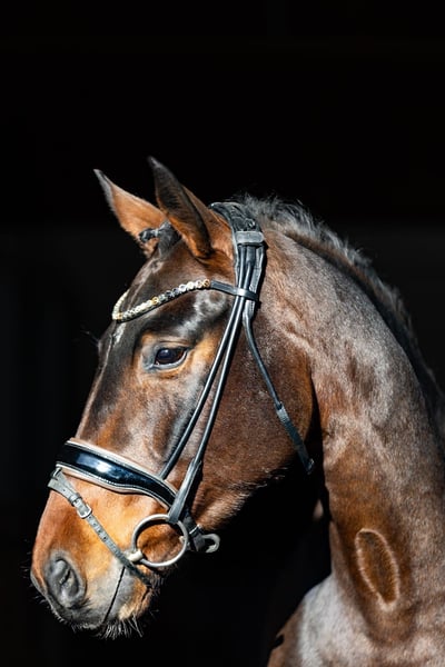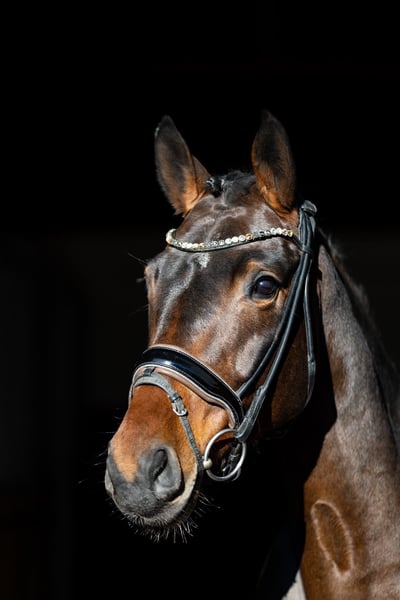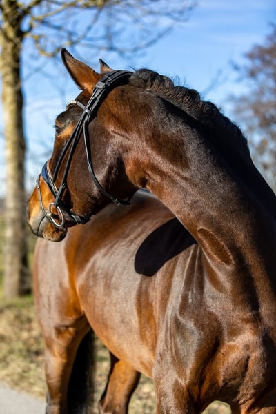Questa straordinariamente bella cavalla baia si distingue per la sua alta qualità, la facilità di monta e una mente particolarmente lucida. Un cavallo ideale per cavalieri esigenti, che tuttavia conquista anche per la sua sincerità e semplicità. Particolarmente notevole è il suo trotto, potente, regolare e che si muove bene attraverso il corpo. Il galoppo si presenta molto espressivo, vigoroso, controllato e con un buon impulso dalla schiena. Il passo è chiaro e sicuro nel ritmo. Nel complesso, possiede tre andature di base molto buone, che permettono un’educazione solida e prospettica in dressage. Sotto la sella si lascia lavorare molto bene, è leggera ai ferri, attenta e sempre presente al comando del suo cavaliere. Rimane lucida, non reagisce eccessivamente e trasmette sempre una sensazione di sicurezza. Questa combinazione di qualità e affidabilità la rende interessante anche per cavalieri meno esperti o giovani con buone capacità di monta, alla ricerca di un animale di alto livello per il futuro. Nel rapporto quotidiano, la cavalla si dimostra assolutamente obbediente, amichevole e fiduciosa. È molto socievole, affettuosa e facile da gestire, un cavallo che si ha semplicemente piacere ad avere intorno. Anche la sua genealogia sottolinea il suo elevato livello qualitativo: è una discendente diretta di Quarterback, con linee materne che risalgono a Sandro Hit e Fidermark. Questi lineaggi sono noti per il loro carattere da cavallo da dressage, l’espressività e la propensione alle prestazioni, e hanno prodotto numerosi cavalli di successo nel dressage. Una cavalla molto speciale, ricca di qualità, versatile e adatta sia a cavalieri esigenti sia a giovani promettenti. Si colloca in una fascia di prezzo elevata. Sede: Rosenheim
