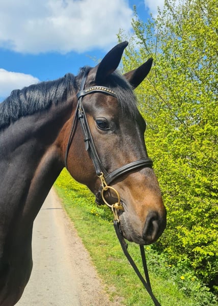 Charmante Allrounderin mit Herz und Talent 🌟 Zum Verkauf steht diese 7-jährige For Romance Staatsprämienstute mit einem Traumcharakter, die jeden Tag Freude bereitet. Mit ihren ca. 170 cm Stockmaß deckt sie auch größere Reiter hervorragend ab und überzeugt durch ihre Ausgeglichenheit, Rittigkeit und ihren unerschütterlichen Willen zur Zusammenarbeit. Diese bildschöne Stute zeigt sich im täglichen Umgang stets brav, menschenbezogen und unkompliziert – ob beim Putzen, Verladen oder beim Schmied. Unter dem Sattel besticht sie durch ihre vielseitige Veranlagung: Mit viel Freude und Übersicht und Herz am Sprung geht sie mutig an Aufgaben heran, im Gelände ist sie stets sicher unterwegs und liebt Ausritte. Ebenfalls hat sie bereits erfolgreich an mehreren Jagden teilgenommen – immer nervenstark und zuverlässig in der Gruppe. Und auch im Viereck weiß sie sich zu präsentieren und zeigt drei gute Grundgangarten sowie eine schöne Lernbereitschaft. Egal ob ambitionierter Freizeitreiter oder Turniereinsteiger – diese Stute ist eine echte Partnerin fürs Leben, die durch ihren ehrlichen Charakter und ihre vielseitigen Einsatzmöglichkeiten begeistert. Wir wünschen uns ein gutes Zuhause mit Herz. Bei ernsthaftem Interesse freuen wir uns über eure Nachricht! Probereiten 30€ (wird bei Kauf verrechnet) Standort: 40882 Ratingen Kontakt: Sabrina Last TEL: 0174 - 2434334