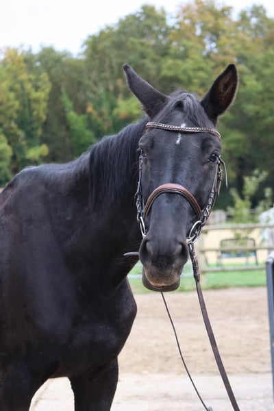 Ehrliche Seele Coco: Neunjährige schwarze Stute sucht neuen Wirkungskreis Cocos Geschichte ist eigentlich ganz einfach: Sie kommt aus einem Schulbetrieb, wo sie jahrelang einen fantastischen Job gemacht hat. Mehreren Kindern hat sie das Reiten beigebracht – ob an der Longe, bei Ausritten, Spielen oder sogar beim Pony-Anmalen. Sie ist neunjährig, schwarz und mit ca. 1,53 m Stockmaß nicht zu klein, aber auch kein Riese, und dazu stabil gebaut, also absolut kein "schmales Hemd". Der einzige Grund, warum sie verkauft wird, ist, dass der Schulbetrieb einfach genug große Pferde hat und jetzt etwas Kleineres braucht. Was man über Coco sagen muss: Sie ist super lieb und unkompliziert. Wenn man wirklich einen "Makel" suchen möchte, dann ist es ihr Galopp. Man merkt, dass sie viel von Kindern geritten wurde – sie neigt dazu, entweder recht flott unterwegs zu sein oder nach einer halben Runde durchzuparieren, wenn der Reiter nicht ganz konsequent dran sitzt. Ihr Galopp ist einfach noch nicht so perfekt gesetzt, wie er sein könnte. Das ist aber auch schon alles. Ansonsten ist sie eine absolute Lebensversicherung, auf die man bedenkenlos auch den größten Anfänger setzen kann. Coco hat wirklich "sämtliche Scheiße" mitgemacht – Longierprüfungen, Arbeitskurse, Kinderferienprogramme, Verkleidungswettbewerbe... Sie ist unerschrocken und unkompliziert. Wer ein absolut verlässliches Pferd sucht, das vielseitig einsetzbar ist und einen tollen Charakter hat, für den ist Coco die Richtige. Alle Angaben ohne Gewähr Keine Verfügung keine Raten // Transport überall hin möglich! Probereiten mo-fr 25€ Sa-so 30€ Vorführen (immer) 10€ Meldet euch gerne! 01703718888