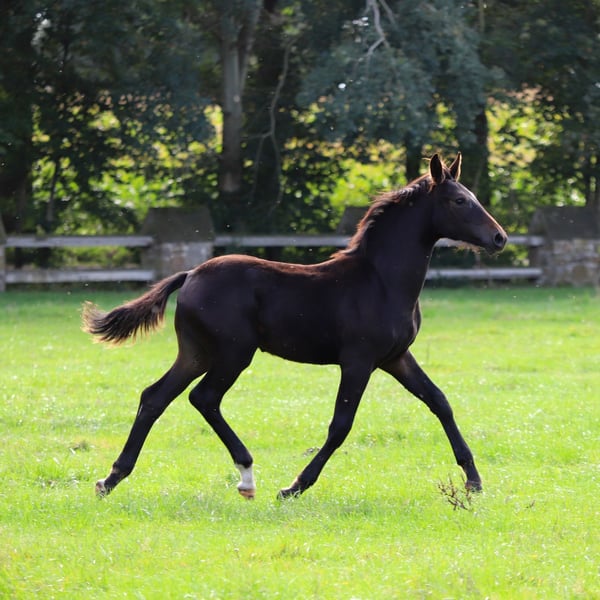 He is always approachable and attentive to people. His gaits are very good and can be viewed in the pasture. Videos as a foal are available. Life insurance is available and can be taken over. This handsome boy can move to his new home in November or stay here for further rearing.