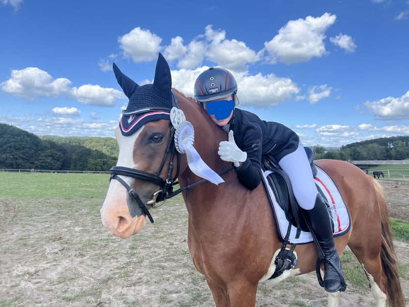 Hello, I am offering my versatile 10-year-old Dutch Riding Pony. It is a true all-rounder pony, ideally suited for children and already has a wealth of experience. - Height: 14.6 hh - Experienced in hacking and at competitions - Traveling in a trailer is no problem - Familiar with both box and open stable management - Chestnut coat with a distinctive white blaze - Sired by FS Mr. Right This pony is a reliable partner for all disciplines of equestrian sports, especially for leisure riding. Feel free to contact me if you have any questions or would like to get to know us. 0171-5272297