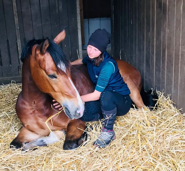 Wegen Umstieg aufs Großpferd unserer Tochter geben wir schweren Herzens unseren 10-jährigen Cookie ab. Er ist ein wundervolles, bildschönes Pony, das durch seine Doppelveranlagung bestens für vielseitige Reiter geeignet ist. Mit fünf Jahren direkt vom Züchter zu uns gekommen, wurde er immer fein geritten und schonend Schritt für Schritt in Springen, Dressur und Gelände weiter ausgebildet. Im Alltag ist er ein fröhlicher Quatschkopf, der für jeden Spaß zu haben ist, kennt Bodenarbeitslektionen, Baden im See, Reiten mit Halsring und ohne Sattel. Wenn er zwar konsequent aber ohne Druck geritten wird, wächst er über sich hinaus. Deshalb sehen wir ihn nicht als Anfängerpony sondern in den liebevollen Händen eines schon etwas fortgeschritteneren Reiters, der seine Vielseitigkeit schätzt und ihn weiter fördert, ohne ausschließlich auf Turniererfolge abzuzielen. Cookie ist kerngesund und deckt auch größere und schwerere Reiter sehr gut ab. Er ist regelmäßig geimpft, entwurmt und beim Zahnarzt vorgestellt (zuletzt 3/26) und hat gesunde, gute Hufe (bei uns für Geländestollen 4-fach beschlagen). Eine Auswahl seiner Erfolge: 1. Reserve beim Bundeschampionat der 6-jährigen Geländeponys L-Dressur ausgebildet A-Dressur mehrfach platziert Zahlreiche Siege und Platzierungen in E- und WBO-Dressur L-Springen ausgebildet und vorgestellt A**-Springen gewonnen Zahlreiche Siege und Platzierungen von WBO- bis A-Springen A-Gelände ausgebildet und vorgestellt E-Gelände und VE gewonnen IGV-Hessen-Trophy gewonnen Landesnachwuchsvierkampf gewonnen, Bundesnachwuchsvierkampf vorgestellt Bei Interesse oder Fragen freuen wir uns auf Kontaktaufnahme.