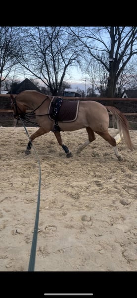 Ich verkaufe mein Dressurpony Donni, er stammt ab von: Dancing Fox x FS Don’t Worry. „Donni“ stammt direkt aus der Zucht vom Kastanienhof er bringt viel Qualität und vor allem einen sehr ehrlichen und tollen Charakter mit. Donni ist ein unkomplizierter 10-jährige Fuchfalbenwallach, er ist auf sicherem L-Niveau und zeigt bereits vielversprechende Lektionen der Klasse M. Auf dem Turnier konnte er sich bereits mehrfach bis Klasse A* platzieren und absolvierte zwei A**-Prüfungen, in denen er jeweils 1. Reserve wurde. Durch seine Rittigkeit, seine positive Einstellung und seine Qualität kann ich mir Donni sehr gut als zukünftiges FEI-Pony vorstellen. Er ist immer ehrlich und fair seinem Reiter gegenüber und zeigt keinerlei Unarten. Sein ausgeglichener und freundlicher Charakter macht ihn auch für Kinder und Jugendliche sehr interessant – er lässt sich problemlos reiten und ist angenehm in der täglichen Arbeit. Er steht gut an den Hilfen, ist leicht in Anlehnung zu reiten und vermittelt seinem Reiter ein schönes Reitgefühl. Auch im Umgang zeigt er sich vorbildlich: verladefromm, brav bei Ausflügen (z. B. ans Wasser) und stets unkompliziert. Zudem ist er gesund, hatte bislang keine Verletzungen oder Koliken. Zubehör wie Sattel und Trense kann auf Wunsch mit erworben werden. Bei ernsthaftem Interesse freuen ich mich über eine Nachricht. Gerne auch über Whats App unter der Nummer 015223249008, bitte keine direkten Anrufe