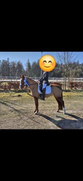 Ponys wachsen leider nicht mit . Wenn alles passt ,darf unser Pony dem nächstem Kind den Einstieg in den Turniersport ermöglichen . Er ist 2016 geboren und 143 cm groß. Er ist von wbo bis E Springen platziert ,A Dressur gegangen und platziert. Er kennt alles was ein Kinderpony kennen muss , reiten ohne Sattel und jeden Quatsch (was Kindern halt so einfällt ). Vermögen für A ist leicht vorhanden , noch nicht gegangen ,weil unser Kind noch nicht so weit war und lieber Dressur reitet. Lässt sich super verladen. Schmied auch ohne Probleme.