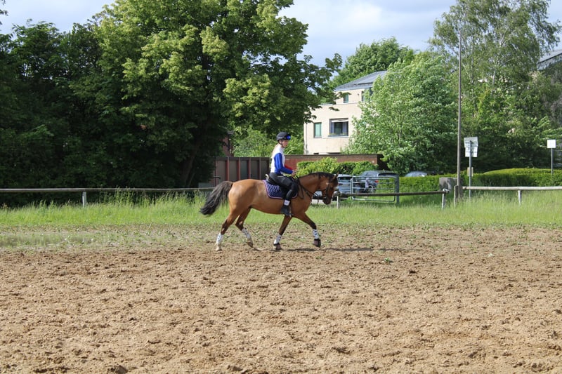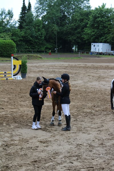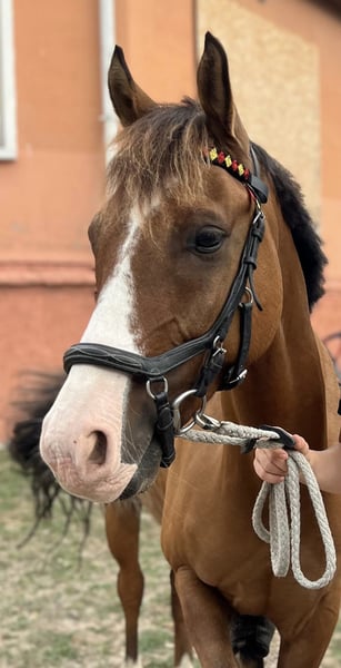 Wir trennen uns schweren Herzens von unserem Familienpony. Rocky Rabauke ist ein sportlicher Ponytyp und als braunfalbe mit Aalstrich und wunderschöner Blesse ein echter Hingucker. Er ist als Proud Rocketti und Don‘t Worry Nachfolger mit drei guten GGA ausgestattet. Wir haben ihn 4 jährig direkt vom Züchter gekauft und liebevoll selbst ausgebildet. Er ist Schmiede- und Verladefromm, ist an Trubel und Turnieratmosphäre gewöhnt, kennt Doppellonge, Bodenarbeit, Baden, Halsring reiten. Er beherrscht Lektionen wie z.B. Galoppwechsel, Außengalopp. Er ist äußerst verkuschelt und zeigt sich sehr brav und mutig im Gelände. Er hat viel Freude am Springen, ist dort jedoch auch mit „Go“ und in der Dressurarbeit mit Schwung ausgestattet, weshalb ich ihn nicht als Anfängerpony bezeichnen würde. Ansonsten ist er jedoch sehr fein an den Hilfen und bringt in der täglichen Arbeit einfach unheimlich viel Spaß. Da es kein Notverkauf ist, gebe ich ihn nur in allerbeste und für ihn passende Hände. Ich kann ihn mir für ambitionierte Jugendliche, als Freizeitpartner oder wieder für ein Mutter-Kind-Gespann vorstellen. Um Reittourismus vorzubeugen, berechne ich 30,- fürs Probereiten.. Anschauen kostet nichts ;-) Bitte anschreiben, dann gebe ich bei ernsthaftem Interesse meine Nummer raus.