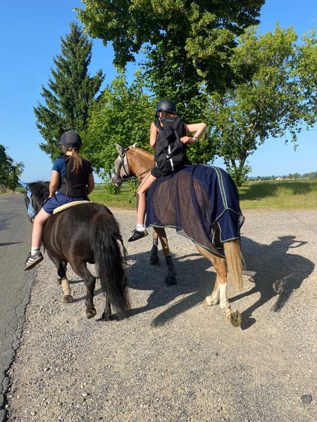 Our gelding was gently backed in his fourth year and has become very dear to us. He is a clever pony that learns quickly and especially enjoys jumping, where he clearly finds his niche. He has never been ill, has no allergies or similar issues, and is barefoot (excellent hoof quality).
