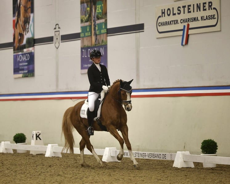 Wegen Umstieg auf's Großpferd trennen wir uns schweren Herzens von unserem talentierten Ponywallach. *** Platz vor Preis *** Bildschön aufgemachter Welsh-Reitpony-Wallach, der mit drei sehr guten Grundgangarten und einem tollen Charakter aufwarten kann. Siege und Platzierungen in der Dressur von A (A* + A** siegreich) bis L*. Aufgrund des raschen Wachstums seiner jungen Reiterin konnten wir sein ganzes Potenzial leider nicht ausschöpfen. Auf dem Turnier stets lektionssicher und ein echter Hingucker. Leider endet unsere Ponyzeit früher als geplant, so dass wir uns für unser Traumpony ein neues 5-Sterne-Zuhause wünschen, wo er einem weiteren Ponykind zum Einstieg in den Sport verhelfen kann und täglich Freude bereiten wird. Mit seiner perfekten Größe von 148 cm (Lifetime-gemessen) deckt er sehr gut ab, ist aber kein Gewichtsträger. Bei weiterer sportlicher Förderung kann er seinem zukünftigen Reiter(in) zu vielen Erfolgen im Ponysport verhelfen und zudem ein toller Freund und Partner sein. Er geht einfach und sicher in Anlehnung, ist sehr sitzbequem und kann dadurch auch von schwächeren Reitern geritten werden. Auch im Springen, zeigt er Talent, von uns jedoch nicht turniermäßig vorgestellt. Im täglichen Handling absolut unkompliziert: Abteilungsreiten, Verladen, Auswärtstrainings, Lehrgänge, Hufschmied, regelmäßige Ausritte (auch alleine), ohne Sattel oder mit Halsring reiten, Stoppelfelder.... er ist für jeden Spaß zu haben. Er steht bei uns in einer gemischten Herde (im Sommer tagsüber auf Weide, im Winter auf Paddocks), war nie krank und ein sehr guter großer TÜV (o.B.) aus 2022 liegt vor. Nur in nachweislich gute und fördernde Hände, ggf. inkl. Zubehör.