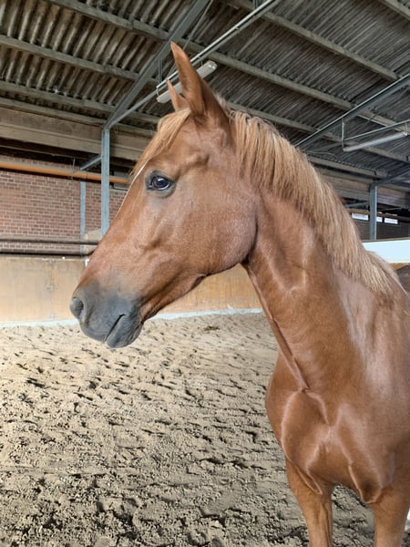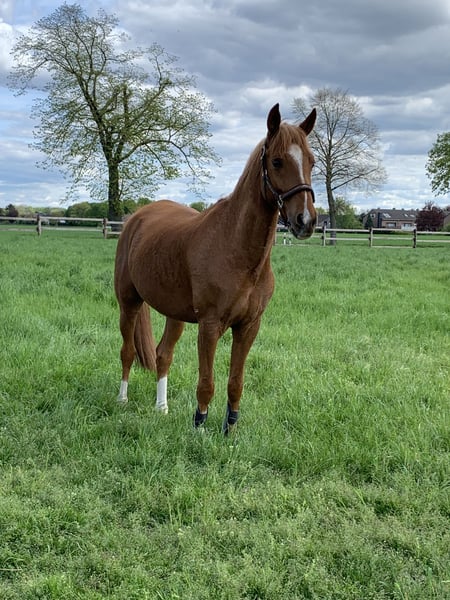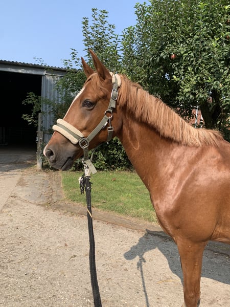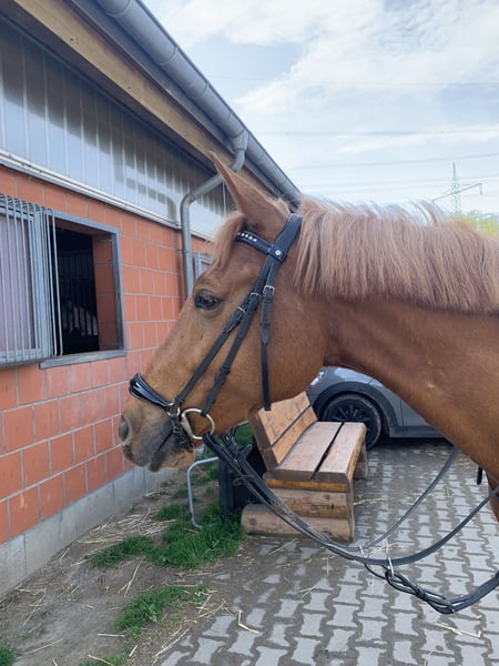 Da Vinci, known as Donni, is a handsome 10-year-old German Riding Pony gelding with a height of 1.48 m. He has been ridden recreationally and by amateurs so far, but he shows more potential. Donni is an absolute all-rounder: - Jumping & Trail: Donni loves going out for rides and showing his skills in jumping. He is always enthusiastic and has a lot of fun, and he also likes to pick up the pace. - Dressage: In dressage, he can be motivated and works well. - Leisure: reliable, well-behaved, and ready for any ride. He shows no vices such as rearing, bucking, or kicking, and he is familiar with both the farrier and the veterinarian, where he always behaves exemplary. Character: In handling, Donni is well-behaved and uncomplicated. He is particularly friendly towards children and can be easily ridden by them. With his great character and big heart, he quickly builds a bond and offers his person trust and affection. Donni is suitable for beginners and re-entrants, as well as for families. At the same time, he also provides joy for advanced riders who want to work further with him, as he cooperates well and is versatile. He can sometimes be a bit skeptical towards new situations but relaxes quickly. Those who gain his trust will have a partner for life – loyal, attentive, and cuddly. Donni is up for any fun, whether it's training, trail rides, groundwork, riding without a saddle, or just having a bit of fun – he is always well-behaved! Care: It is important to me that Donni goes to a suitable home. Ideally, a paddock paradise, active stable, or similar would be perfect. Box housing with sufficient daily turnout is also acceptable. Donni is a pony to fall in love with – well-behaved, lovable, and versatile.