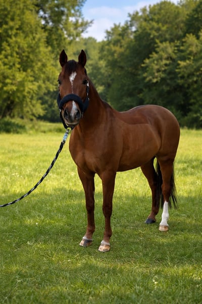 We are offering our 11-year-old dressage pony gelding, Cherrytree, for sale as we are now entering our final pony year and will be moving up to a larger horse. Cherry has been in our possession for five years and has achieved many shared successes with my daughter during this time. He successfully carried my daughter through her first elementary dressage tests up to her first joint pony FEI competitions. Thanks to Cherry, my daughter was accepted into the pony dressage team. This little pony is at the perfect age to start competing with a child or young rider. Cherry always provides a secure feeling for the rider and simultaneously offers the quality needed for sport. Despite his size, he covers the movements very well and is a true sweetheart in handling—affectionate and uncomplicated.