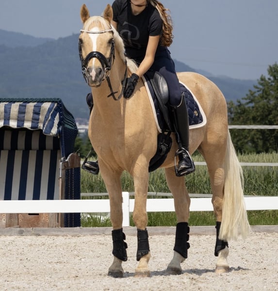FEI-Pony zu verkaufen Aufgrund meiner Allergie muss ich mich leider schweren Herzens von meinem Pony Golden Darling trennen. Alter: 11 Jahre Stockmass: 147 cm Golden Darling ist ein absolutes Verlasspony: brav im Umgang, geländesicher und verkehrssicher. Er liebt Abwechslung, geht gerne auf Turniere und ist verladefromm. Auch mit Kindern an der Longe ist er unkompliziert. Er möchte gefördert und gefordert werden. Zum Verkauf gehört das komplette hochwertige Zubehör, inklusive eines Dressurmasssattels der Marke Erreplus (Neukauf August 2025 für CHF 4'800.–). Ich wünsche mir für ihn einen liebevollen Endplatz bei jemandem, der genauso viel Freude an ihm hat wie ich. Für weitere Fragen stehe ich telefonisch zur Verfügung. Probereiten ist jederzeit möglich.