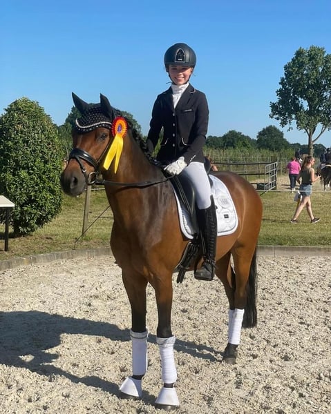 Mit „Hardy“ haben wir einen bildschön aufgemachten Wallach, der mit drei sehr guten Grundgangarten und einem tollen Charakter aufwarten kann. „Hardy“ konnte bereits mit zwei jugendlichen Reiterinnen zahlreiche Erfolge sammeln. So kann er zahlreiche Siege und Platzierungen bis zur Klasse L** mit einer 12-jährigen Reiterin in Deutschland vorweisen. Im Anschluss kam der Wallach zu einer Turniereinsteigerin in Österreich, wo er in den letzten beiden Jahren mit ihr erfolgreich im Turniersport vertreten war. Leider endet nun auch hier die Ponyzeit, so dass „Hardy“ einem weiteren Ponykind zum Einstieg in den Sport verhelfen kann. Der Wallach kann direkt in FEI-Prüfungen eingesetzt werden. Aufgrund seiner perfekten Größe von 148 cm steht dem Ponysport und einem Lifetime-Measuring-Zertifikat nichts entgegen. „Hardy“ ist sehr leicht durchs Genick zu reiten, so dass ihn auch schwächere Reiter gut bedienen können. Im Umgang ist er absolut liebenswürdig und genießt es von seinem Reiter verwöhnt zu werden. Bei weiterer sportlicher Förderung kann „Hardy“ seinem zukünftigen Reiter(in) zu vielen Erfolgen im Ponysport verhelfen und zudem ein toller Freund und Partner sein. Ein Röntgen-Tüv von 2023 incl. Rücken und Hals liegt vor. https://youtu.be/Fzn1ncEYnLM?si=yAXZim6RhjD06CmF Preis d. Qualität entsprechend. Bei ernsthaftem Interesse melden Sie sich gerne telefonisch unter der +491707941333