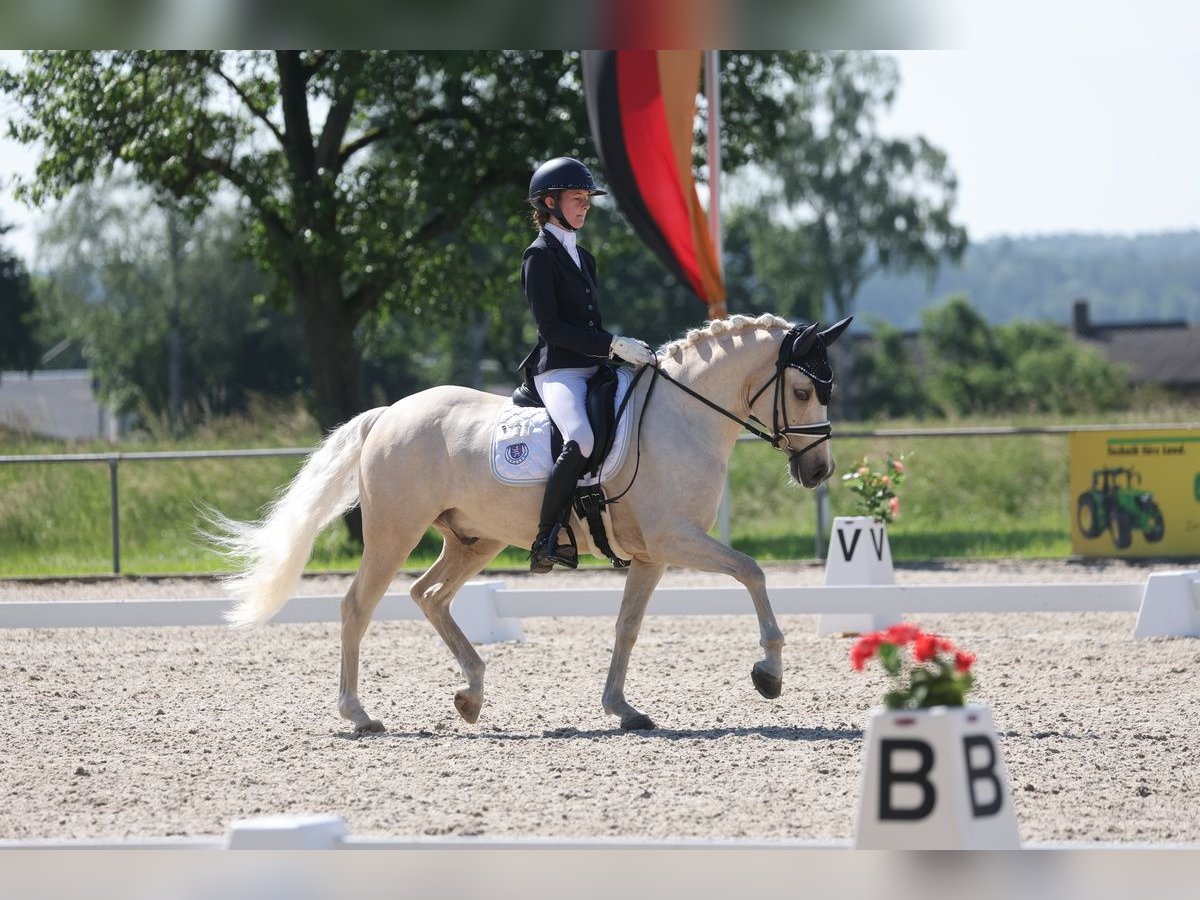 Glitzerflitzer is a reliable and calm pony that always provides a sense of security for its rider. Especially in walk and canter, he impresses with excellent quality, rhythm, and a comfortable seat. He has competed in several pony FEI classes, achieving placings of up to 69.**%, consistently demonstrating composure, nerves of steel, and motivation. In national competitions, Glitzi has won multiple L-level dressage tests, with scores up to 8.5. He has also competed several times at the South German Pony Championships and the Hessian Championships. He is very well-behaved in handling, clear-headed, and remains calm in new situations, whether at competitions, during training, or in everyday life. Glitzi always wants to please his rider and works with motivation. He provides his rider with a lot of confidence and is ideally suited for an ambitious young rider who wishes to continue competing in the sport.