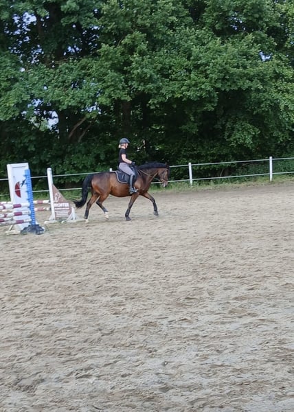Zum Verkauf steht der 11-jährige Wallach „Chantre bon coeur“. Er wird aber liebevoll „Chumba“ genannt. Er hat einen Stockmaß von 153cm aber deckt aufgrund seiner Statur super ab. Er ist als Dressur gerittenes Freizeitpferd aufgrund von beruflichen Veränderungen abzugeben. Er geht gerne ins Gelände. Sowohl alleine als auch in einer Gruppe. Bei der Longen- und Bodenarbeit zeigt er sich super gelehrig. Er hat auch schon regelmäßig beim Gelassenheitstraining mitgemacht. Er braucht einen zuverlässigen Partner der sich gerne Zeit für ihn nimmt und konsequent ist. Daher ist er auch kein Anfängerpferd. Mit anderen Pferden ist er unkompliziert. Bislang hat er sich eigentlich mit jedem anderen Pferd verstanden. Er kennt täglichen Paddock- und Weidegang zu zweit und lässt sich auch zu zweit führen. Er wird regelmäßig geimpft und entwurmt. Die Zähne werden ebenfalls regelmäßig kontrolliert. Er wird außerdem regelmäßig der Osteopathin und dem Schmied vorgestellt. Das Zubehör kann gegen Aufpreis zusätzlich erworben werden. Bei weiteren Fragen gerne hier oder per WhatsApp unter 01702696445 melden. Bei sämtlichen Angaben handelt es sich um subjektive Einschätzungen. Sie stellen daher keine rechtliche Beschaffenheitsvereinbarung dar.