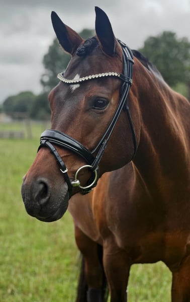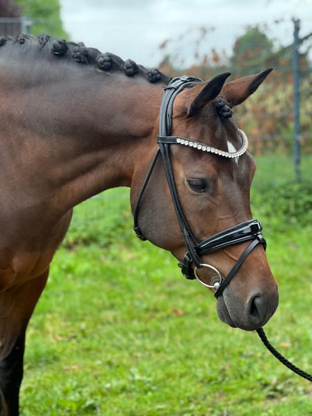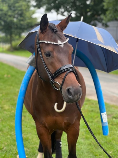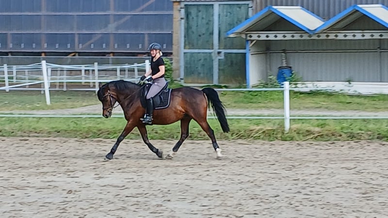 For sale is the 11-year-old gelding "Chantre bon coeur," lovingly called "Chumba." He stands at 153 cm but has a great build that makes him appear larger. He is being offered as a dressage-trained leisure horse due to professional changes. He enjoys going out on trails, both alone and in a group. During lunging and groundwork, he shows great willingness to learn. He has also participated regularly in desensitization training. He needs a reliable partner who is willing to take their time with him and is consistent. Therefore, he is not suitable for beginners. With other horses, he is uncomplicated. So far, he has gotten along well with every other horse. He is used to daily paddock and pasture turnout in pairs and can also be led in pairs. He is regularly vaccinated and dewormed. His teeth are also checked regularly. Additionally, he is regularly seen by an osteopath and a farrier. The equipment can be purchased for an additional fee. For further questions, please feel free to contact here or via WhatsApp at 01702696445. All information provided is based on subjective assessments and therefore does not constitute a legal warranty of condition.