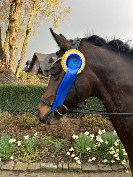 Expressive, high-quality, and full of character! Anyone seeking such a sport partner will find it here! G-Star, born in 2012, gelding, 148 cm Pedigree: Going East x Dein Sunnyboy Currently competing at L/LS** level with high placements Due to the rider's transition to a larger horse, this wonderful pony is now for sale. G-Star is a very well-trained and experienced FEI pony that confidently masters all required movements. He has competition experience with numerous wins and placings in L, LS**, and FEI tests as a Kader pony. As a young horse, he was successful against larger horses with scores up to 9.0. He is an ideal partner for children starting in the sport as well as for ambitious young riders ready for immediate competition use. He also suits smaller and lighter adult riders well. G-Star is in excellent health, has never been sidelined due to injury, and a recent X-ray exam from 2024 shows no issues. He has no faults or bad habits, and is both farrier- and loading-friendly. Under saddle, he is always diligent, willing, and well-behaved, with a very pleasant go and easy handling. Trail riding with him is wonderfully relaxed, he performs small jumps confidently, and has quickly learned flying changes. He enjoys turnout and paddock time immensely, and is always friendly towards other horses. In handling, he is a true treasure—obedient, human-oriented, friendly, cheerful, and easy for anyone to manage. He is completely clear-headed, fearless, and neither distracted at home nor at competitions. G-Star is a pony that brings joy every day and consistently meets the highest standards!