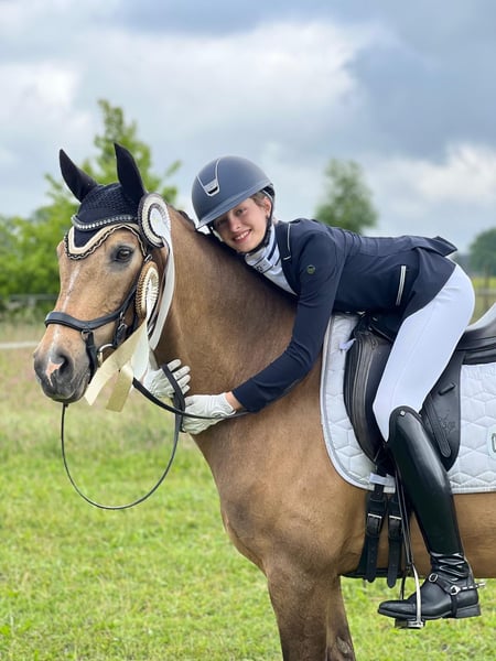 Zum Verkauf steht unser außergewöhnlicher Reitpony-Wallach Cosmo de Luxe WE von Top-Vererber Champion Deluxe. Cosmo ist charmant, ehrlich und leistungsstark – er begeistert mit Ausdruck, hoher Grundqualität, feinem Charakter und einer überragenden Einstellung zur Arbeit. 🏅 Erfolge: • Siegreich bis L* mit 14-jährigem Mädchen • Kuschelcup-Finalist in den Holstenhallen • Teilnahme an den Bundesnachwuchssichtungen Warendorf • 5. Platz im Bundeschampionatsfinale (4-jährig), mehrfach qualifiziert • Mehrfacher Sieger des Young Talents Cup Hamburg • Platziert bis L** gegen Großpferde, FEI bis 69 % Cosmo ist fein zu reiten, immer ehrlich, leistungsbereit und verlässlich – ein Partner, der für seinen Reiter durchs Feuer geht. Ein toller Lehrmeister, der Kinder erfolgreich in den Ponysport geführt hat und auch Erwachsene hervorragend abdeckt. Abseits des Sports ist Cosmo ein echter Freund und Familienpony – verschmust, sozialverträglich und glücklich in Gruppenhaltung mit viel Weidegang. Auch im Gelände zeigt er sich von seiner besten Seite – ob ohne Sattel, im Wald oder am Strand. Leider sind unsere Kinder dem Ponyalter entwachsen, daher suchen wir ein 5* Zuhause für dieses Herzenspony mit Familienanschluss und idealerweise viel Weidegang in der Gruppe oder zu Zweit. 📞 Kontakt bitte ausschließlich telefonisch oder per WhatsApp. ✉️ E-Mails werden nicht beantwortet.