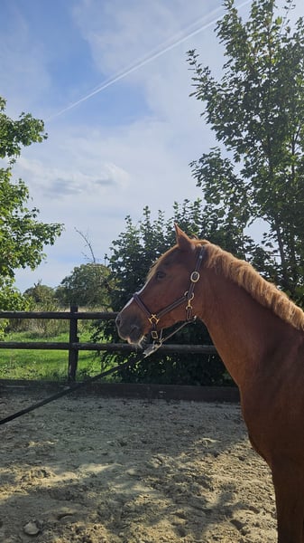 We must sadly part with our 13-year-old Dutch pony gelding Blitzi. He has been in our possession for 6 years, and my two daughters have learned a lot with and from him. They love him dearly, but my younger daughter is now getting too tall, and the transition to a larger pony/horse is unfortunately inevitable. Blitzi is a very handsome and appealing pony in "large horse format" with great conformation. He has good basic gaits, and my two daughters have successfully competed with him in competitions up to class A. They have won several dressage competitions and E-level dressage tests with him and have placed multiple times in A-level dressage against larger horses. Our pony loves to be engaged with. He also enjoys groundwork/obstacle training and is fearless. He is respectful in work, learns quickly and eagerly. He also enjoys trail riding. Blitzi lives with us in an open stable/large paddock box and is used to daytime turnout in the summer. He requires plenty of fresh air, so box confinement is not an option for him. In the summer, he receives wet hay (possibly haylage is also an option). In winter, he gets regular dry hay. Otherwise, he is healthy and very compatible with other horses. He is well-behaved and easy to ride. However, a rider must also be able to assert themselves. He is robust, regularly dewormed, vaccinated, and well-behaved for the farrier and loading. We are looking for a wonderful new home for him where he can spend plenty of time outdoors and have a lot of joy in a new family. There is also the option to take saddles with him. Only to the very best hands.