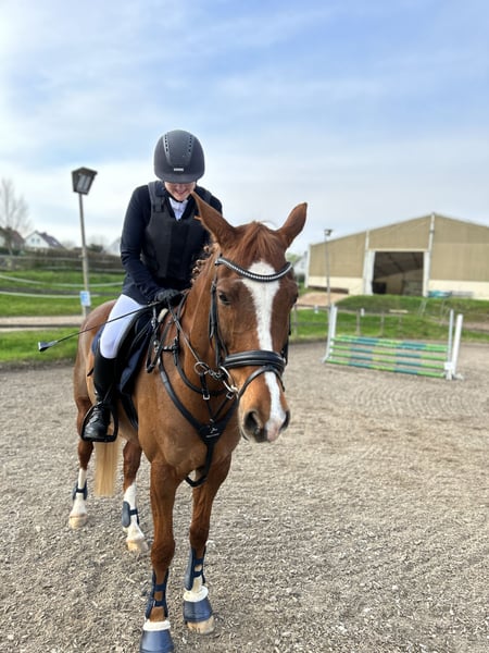 Verkaufe meinen 2013 geborenen wunderschönen XXL Fuchsponywallach. Stm. ca 154 DRP Top Christobell x Bavarottie Chicco steht aktuell in Boxenhaltung mit täglichem mehrstündigem Paddockgang, kennt aber auch Weide- und Gruppenhaltung im Sommer. Er ist sehr sozial und liebt es mit anderen Pferden in Gesellschaft zu stehen. Auch Stuten und Fohlen sind kein Problem. 2019/2020 von der Vorbesitzerin in Dressur, Springen und Geländeprüfungen vorgestellt. Von mir nicht weiter gefördert. Ich bin Wiedereinsteigerin und habe in den letzten Jahren viel von Chicco gelernt. In Dressur und Springen läuft er sicher auf A Niveau. Benötigt allerdings einen schon erfahrenen Reiter der von oben auch mal Sicherheit geben kann. Traumhaft weiche Gangarten die super zu sitzen sind. Er liebt es zu springen. Kein Anfänger- oder Kinderpony! Chicco reagiert auf Heustaub und benötigt gewaschenes/ bedampftes Heu oder Heulage und steht auf Leinstroh/Späne. Er hat dadurch keine Einschränkungen. Chicco hat eine tolle Hufsubstanz und läuft Barhuf. Abzugeben aufgrund gesundheitlicher Probleme meinerseits.