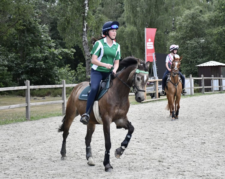 „Pepsi“ ist ein Deutsches Reitpony (Welsh B-Araber-Mix) und ist derzeit 15 Jahre alt. Er ist nun 6 Jahre im Mounted Games Sport gelaufen, ist dementsprechend angstfrei und große Reitplätze und Arenen mit viel Publikum gewohnt. Er ist in der Dressur bis A-Niveau ausgebildet und läuft immer fein an den Hilfen. Dabei zeigt er tolle Gänge. Auch springen tut er gerne und zuverlässig. Pepsi ist ein selbstbewusstes Pony und gibt seinen Reitern immer viel Sicherheit und lässt sich von jedem gut reiten. Er geht alleine und mit anderen Pferden ins Gelände und lässt sich dabei immer gut händeln. Er ist ein fleißiges Pony, dabei aber nie nervös und kann somit auch problemlos von Kindern geritten werden. Er ist schmiede- und verladefromm und hat keinerlei Krankheiten. Er wurde selbstverständlich immer entwurmt und geimpft. Bei Bedarf kann passendes, gut erhaltenes Zubehör übernommen werden. Bei weiteren Fragen, können Sie sich gerne unter der Nummer: 0176 35490207 auf WhatsApp melden.