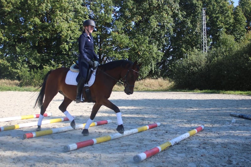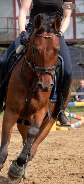 Schweren Herzens müssen wir nach vielen gemeinsamen Jahren nun Abschied nehmen von unserem Pony „Cato“ (Descarato G). Er ist ein tolles Pony, mit einem hübschen Gesicht und einem Charakter zum lieb haben. - Descarato G bei uns „Cato“ - Deutsches Reitpony - Wallach - Ca. 1,45 m (deckt auch größere Reiter ab; Reiterin auf dem Foto ist 1,66m) - Geb. 2011 Cato hat uns nun viele Jahre in unserem Schulbetrieb begleitet und vielen Kindern das Reiten beigebracht. Die Kinder durften von ihm und seiner Gutmütigkeit lernen und wachsen. Jetzt ist es Zeit sich von unserem Cato zu verabschieden, da er uns zeigt, dass er mit den wechselnden Reitern nicht mehr zurecht kommt. Cato macht jeden Spaß mit, ohne Sattel reiten, Ausreiten (in der Gruppe und alleine), geht Dressurmäßig (mit Groß und Klein) und macht auch den ein oder anderen Sprung. Auch Ausflüge auf den Geländeplatz und in die Heide zum Ausreiten durfte Cato schon erleben, dort hat er sich immer freudig und umgänglich gezeigt. Auch zum Auswärtsturnier war unser Cato schon mit unseren Reitschülern, auch dort zeigte er sich verlässlich und von der Situation unbeeindruckt. - Turniermäßig im Bereich WBO vorgestellt - Menschenbezogen, freundlich und unkompliziert im Umgang - Steht ruhig beim Schmied (vorne Beschlagen) - kennt Hunde bei Fuß, Trecker, Autos und co - Gute Grundausbildung und ansprechende Grundgangarten Einfach ein Pony zum lieb haben – und genau das wünschen wir uns für ihn. Einen Platz wo er die Nummer 1 sein darf und zeigen kann was er kann. Cato ist jedoch kein Pony für absolute Reitanfänger, hier hinterfragt er, ob die Richtung wirklich die richtige ist. Er möchte schon gefordert und gefördert werden. Bei entsprechender Auslastung ist er jedoch auch von schwächeren Reitern zu händeln. Derzeit wird er noch von ein paar Schülern auf Dressurreiter-WB Niveau geritten. Cato geht z.B. einfache Wechsel, Außengalopp und zeigt verschiedene Lektionen die ein Lehrpony können sollte. Er ist ein Pony zum Spaß haben – ob beim Ausreiten auf dem Stoppelfeld oder im Wald, auf dem Platz in der Dressur- oder Springarbeit, er macht alles mit und zeigt auch gerne was er kann. Cato kennt sowohl Offenstallhaltung als auch nachts Box und tagsüber Weide bzw. Paddock. Aktuell steht er den Sommer über in Offenstallhaltung. Wenn ihr mehr über Cato erfahren wollt oder ihn mal kennenlernen möchtet, dann meldet euch gerne, dann können wir einen Termin ausmachen. Bei Bedarf können Videos verschickt werden.