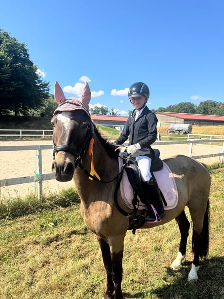 Unser Pony sollte lange bei uns bleiben, das wird nun leider nichts. Wir sind Einsteller in einem großen Stall, und sind zeitlich sehr eingeschränkt. Er braucht Zeit und Ruhe, kein ständiges kommen und gehen. Zeit und seine Bezugspersonen. Mit viel Trubel kommt er nicht zurecht. Mit meinem großen stand er im Sommer gemeinsam auf der Koppel was gut funktioniert hat, nur wenn ihm langweilig ist auf dem Paddock stänkert er immer mal wieder. Meine Tochter ist mit ihm als sie 6 Jahre alt war letzte Saison ihren ersten Wettbewerb geritten und wurde gleich 3. Er kennt seinen Job sehr genau und weiß was zutun ist. Er beherrscht alle L Lektionen, Außengalopp super einfach zu reiten auch ist er SEHR weich in der Hand und total einfach am Zügel zu reiten. Wir suchen ein Zuhause das ihm Sicherheit und Ruhe geben kann. Durch den ganzen Stress den er sich macht hat er leider ganz schön abgenommen, er steht aber im Training. Bei Fragen oder Videos bitte direkt über WhatsApp 015228841914